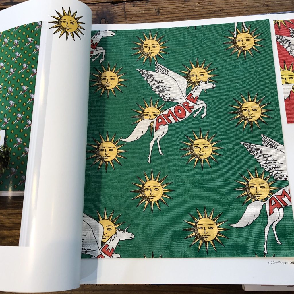 シチリア出身の服飾デザイナーalessandro enriquez(アレッサンドロ・エンリケス)のちょっとレトロでPOPな柄を壁紙にした見本帳から馬の柄をご紹介いたしました。