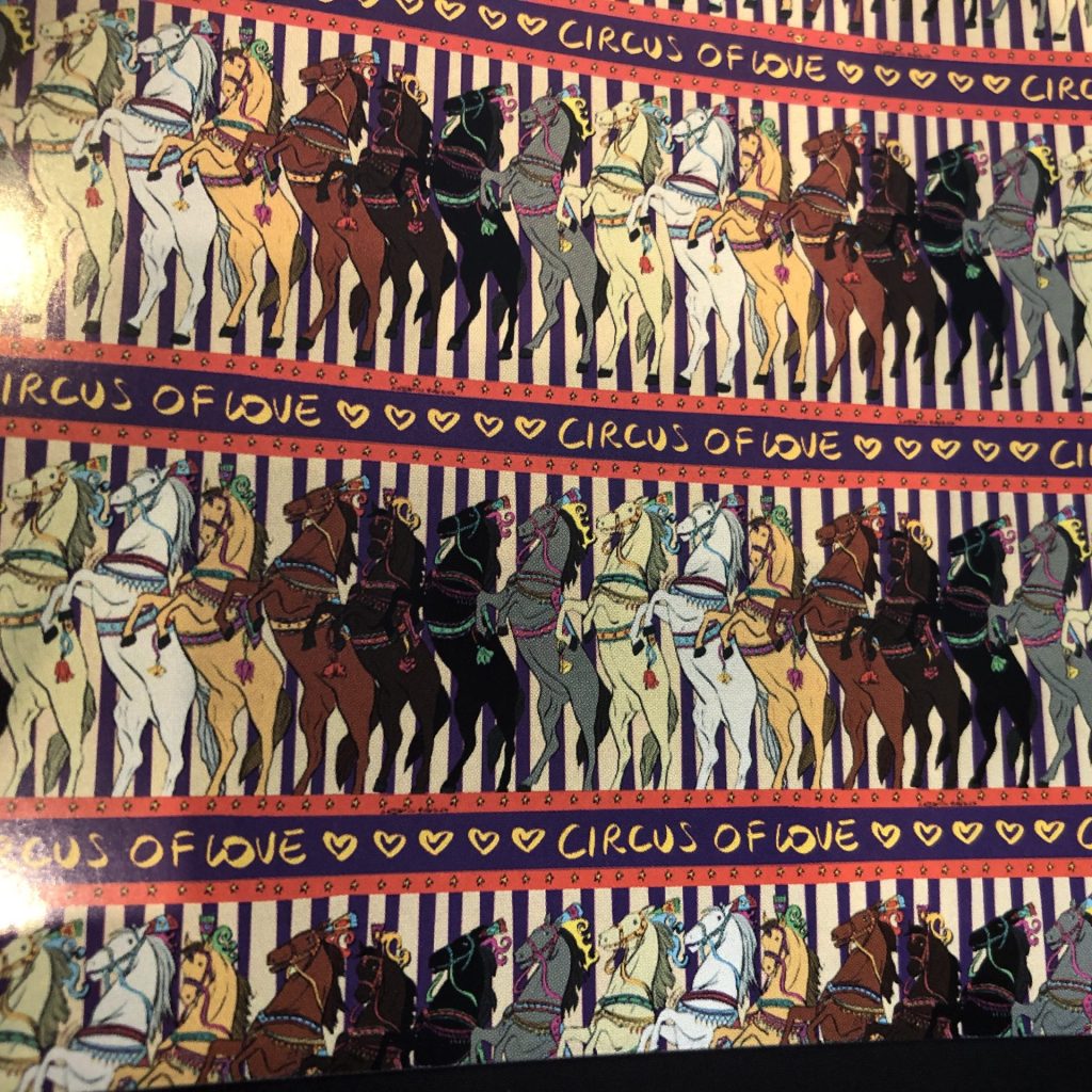全体の壁紙はこちら↑。上部にサーカスの動物、象などと描かれています。かなり大きな壁紙になります。レトロでおしゃれな雰囲気の壁紙ですね。壁の一部に貼るだけでガラッとにぎやかで華やかな空間になりそうです。
